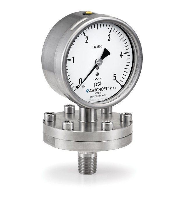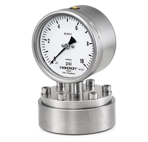 The Ashcroft®P5500/P6500 is a diaphragm style process pressure gauge designed for challenging low pressure processes with high overload protection. Utilizing a unique “dry cell” mechanism, it has no system fill fluid with may pose hazards in certain applications. Pressure connections include threaded and flange mounting options, ranges as low as 10 in. H2O and optional ATEX approvals.
